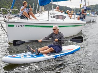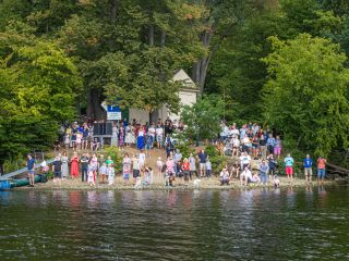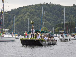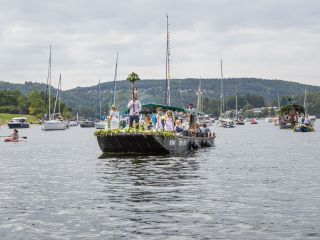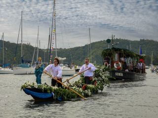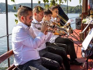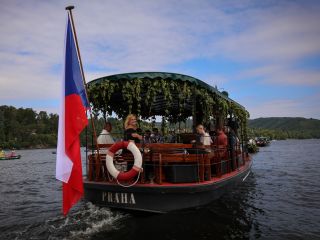 vodní procesí vyplouvá ze Sladovařské zátoky v 10.00 ráno
